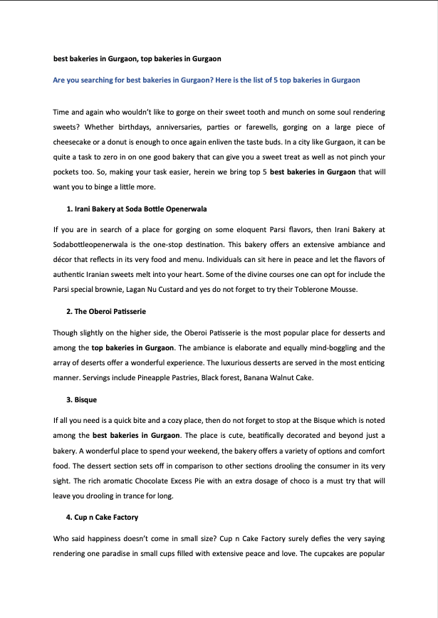 Are you searching for best bakeries in Gurgaon_ Here is the list of 5 top bakeries in Gurgaon