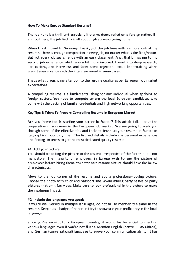 How To Make Europe Standard Resume