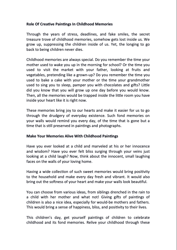 Role Of Creative Paintings In Childhood Memories