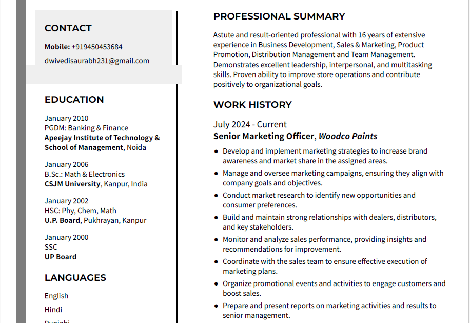 Check out our resume writing work to get a better idea of how our professional resumes present candidates’ key skills and achievements. At Words And Cappuccinos, our team of expert resume writers create and tailor every resume to highlight unique career journey objectives.